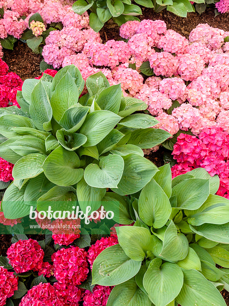 Plantain lily (Hosta) and big-leaved hydrangea (Hydrangea macrophylla)