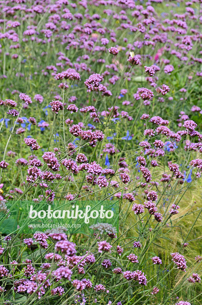 Verbena bonariensis, also known as tall verbena or purpletop vervain, is a perennial plant native to South America. It features tall, slender stems topped with clusters of small, purple flowers that attract butterflies and pollinators. Drought-tolerant and low-maintenance, it thrives in full sun and well-drained soil. Often used in borders or wildflower gardens, it can reach heights of 3-6 feet (1-2 meters). Self-seeding and hardy in USDA zones 7-11, it adds vertical interest to landscapes.
