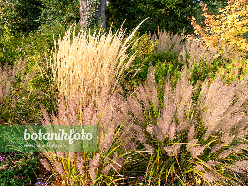 Reed grass (Calamagrostis x acutiflora 'Karl Foerster') and feather reed grass (Calamagrostis arundinacea var. brachytricha syn. Achnatherum brachytricha)