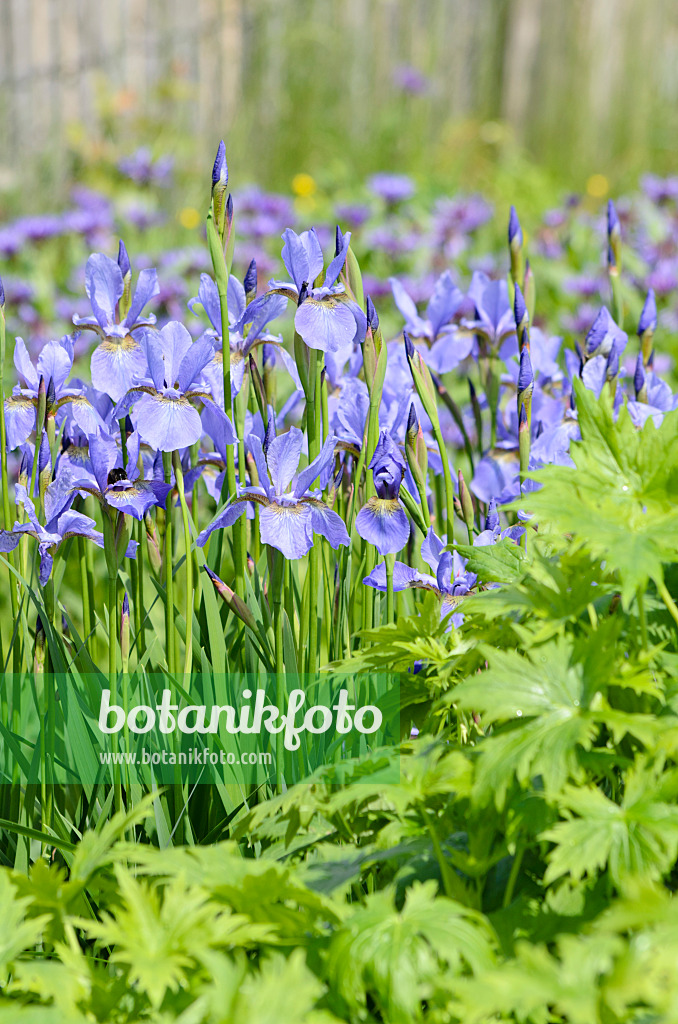 Iris sibirica, commonly known as Siberian iris, is a hardy perennial native to Europe and Central Asia. It features slender, grass-like foliage and elegant blue-violet flowers with yellow markings, blooming in late spring to early summer. This low-maintenance plant thrives in moist, well-drained soil and full sun to partial shade. It is ideal for borders, water gardens, and naturalized areas, attracting pollinators while being deer-resistant. Siberian iris spreads slowly via rhizomes and is known for its resilience in cold climates.