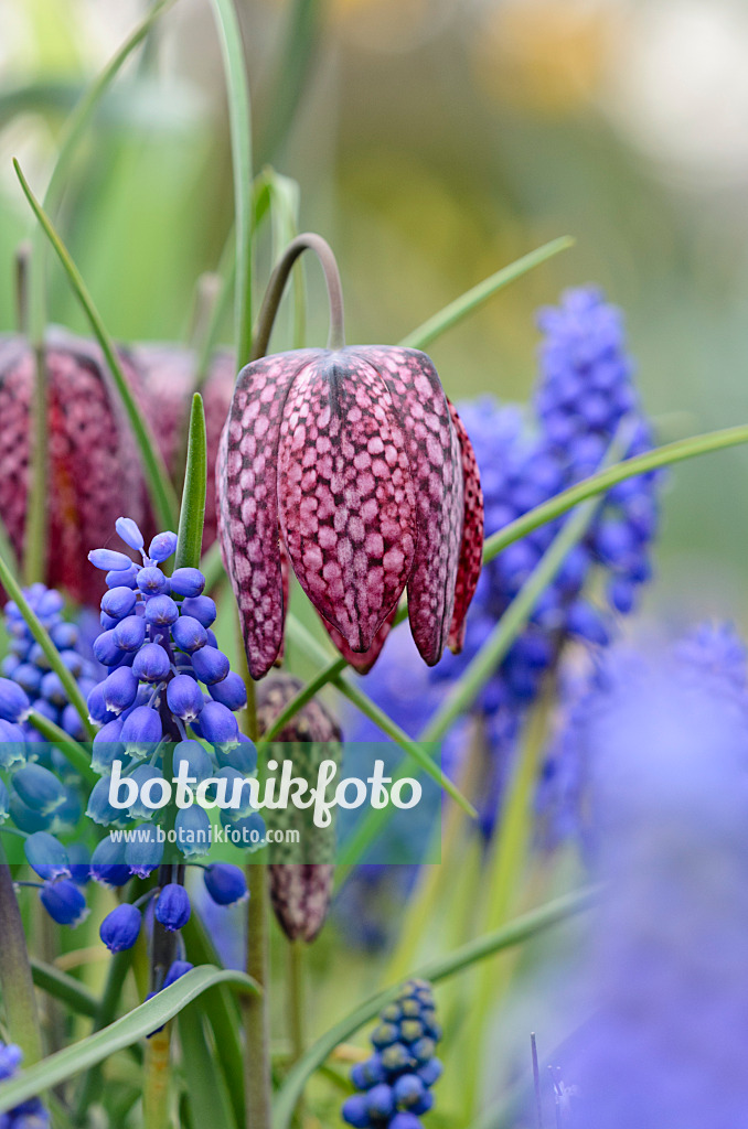 Snake's head (Fritillaria meleagris) and Armenian grape hyacinth (Muscari armeniacum)