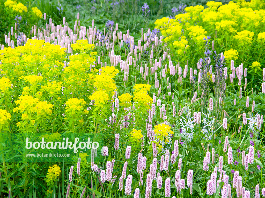 • 508080 - Marsh spurge (Euphorbia palustris), Camassia leichtlinii 'Caerulea' and adderwort (Bistorta officinalis syn. Polygonum bistorta)