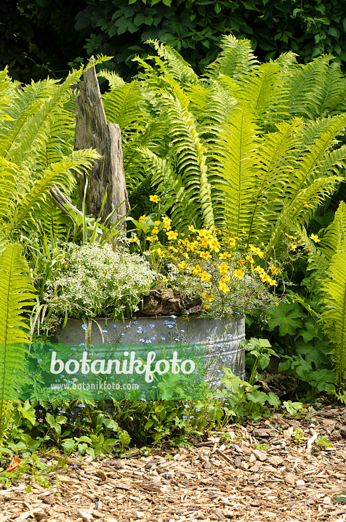 Spurge (Euphorbia hypericifolia 'Diamond Frost') and beggarticks (Bidens) in a tin trough