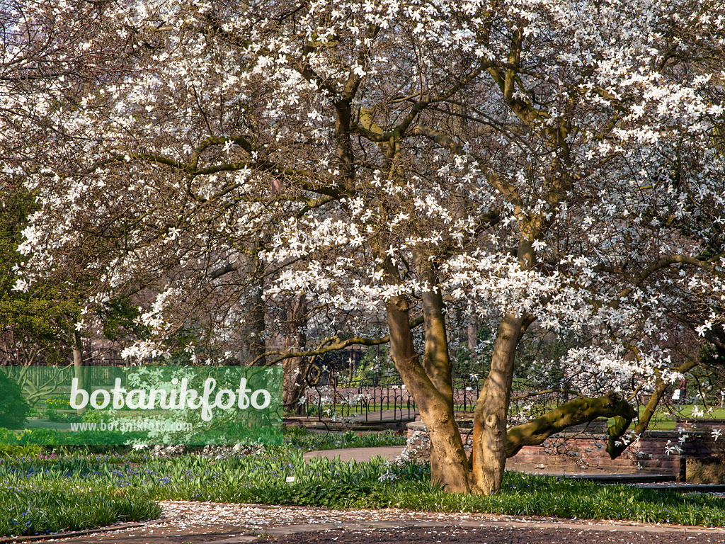 Magnolia stellata, commonly known as the star magnolia, is a small deciduous tree or shrub native to Japan. It features fragrant, star-shaped white or pink flowers that bloom in early spring before the leaves emerge. It grows up to 4-6 meters tall and prefers well-drained, slightly acidic soil in full sun to partial shade. Popular for its ornamental value.