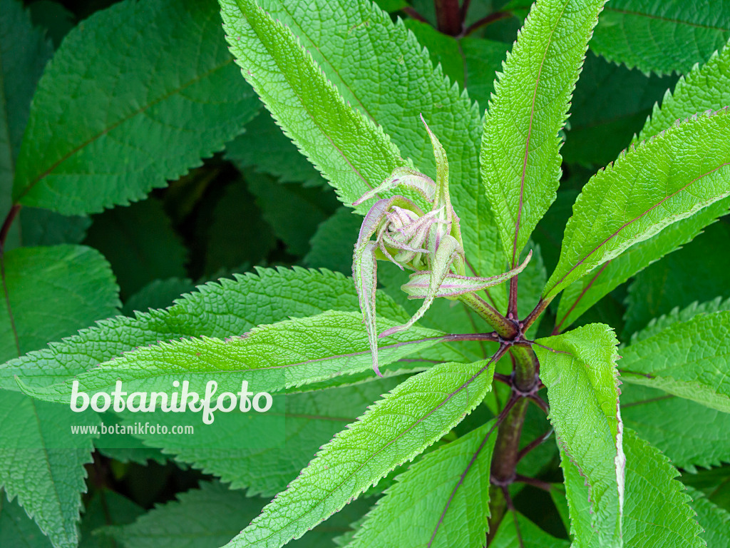 Eupatorium maculatum, commonly known as spotted joe-pye weed, is a perennial plant native to North America. It thrives in moist soils and produces clusters of pink to purple flowers in late summer to early fall. It attracts pollinators like butterflies and bees. The plant can grow up to 6 feet tall and has spotted stems, giving it its name. It is often used in gardens for its ornamental value and ecological benefits.