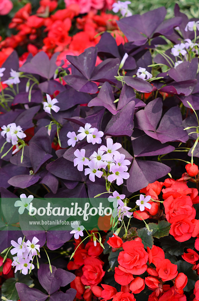 Threeleaf purple shamrock (Oxalis triangularis) and begonia (Begonia semperflorens)