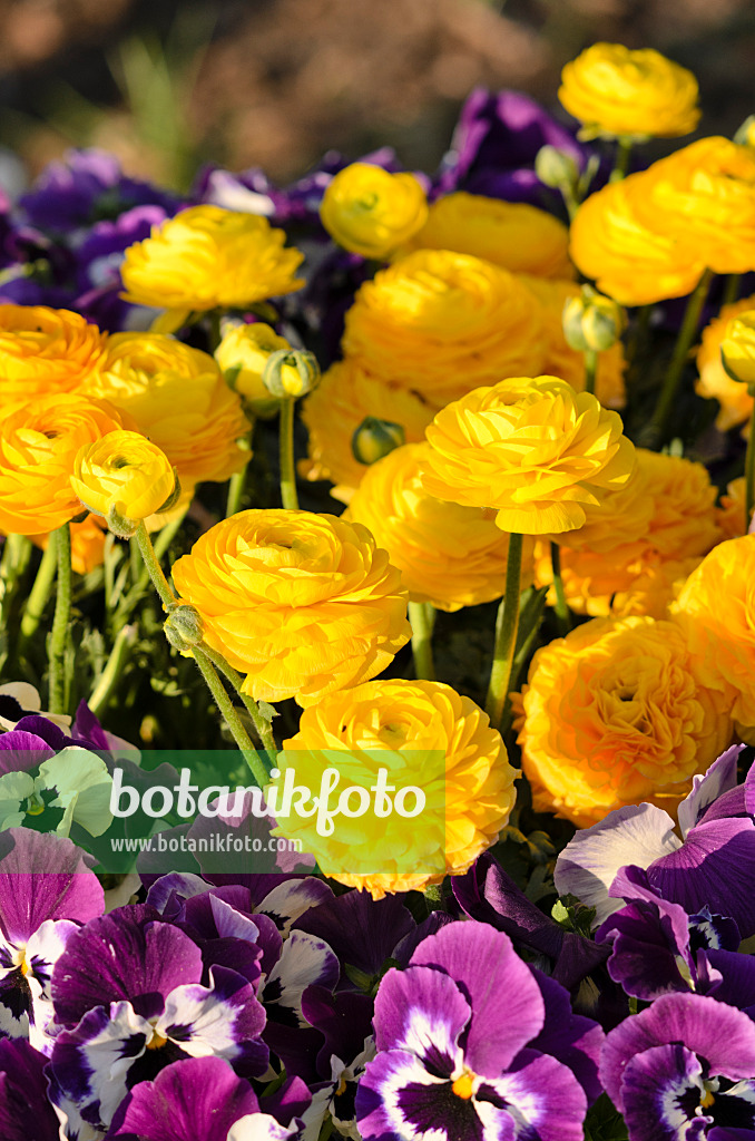 Turban buttercup (Ranunculus asiaticus) and violet (Viola)