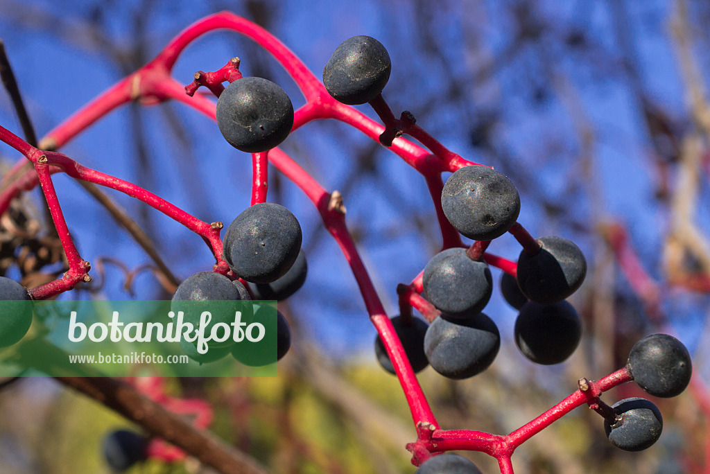 Parthenocissus quinquefolia, commonly known as Virginia creeper, is a fast-growing deciduous vine native to eastern and central North America. It features five-leaflet palmate leaves that turn bright red in fall. The plant produces small greenish flowers and dark blue berries. It clings to surfaces via adhesive tendrils and is often used as an ornamental plant for covering walls or fences. While attractive, it can become invasive if not controlled. The berries are toxic to humans but provide food for birds.