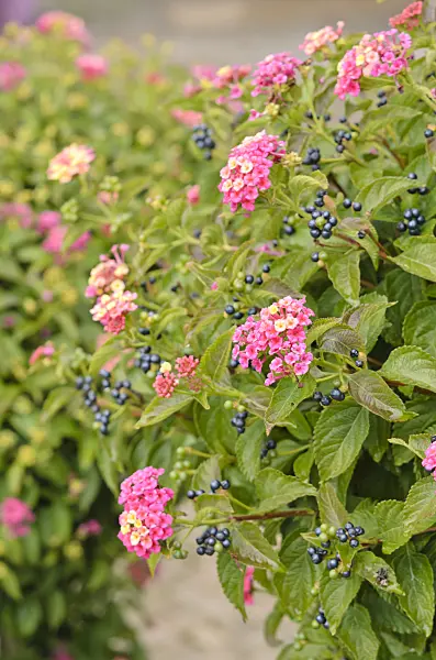 Lantana camara is a flowering shrub native to tropical regions of the Americas and Africa. It produces clusters of small, colorful flowers that change hues as they mature, often attracting butterflies. The plant is highly invasive in many areas, outcompeting native species. Its leaves and berries are toxic to humans and animals if ingested. It thrives in warm climates and is drought-resistant, often used in landscaping.