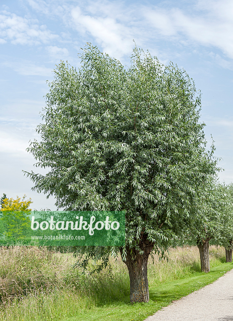 Salix alba, commonly known as white willow, is a deciduous tree native to Europe and western Asia. It grows up to 25 meters tall, with narrow, lance-shaped leaves and grayish-white bark. Known for its medicinal properties, its bark contains salicin, a compound similar to aspirin. It thrives in moist soils and is often found near rivers or wetlands. The tree is also valued for its flexible wood, used in basketry and furniture.