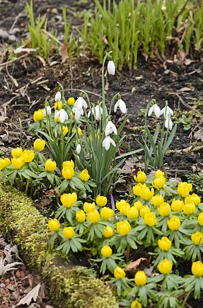 Winter aconite (Eranthis hyemalis) and common snowdrop (Galanthus nivalis)
