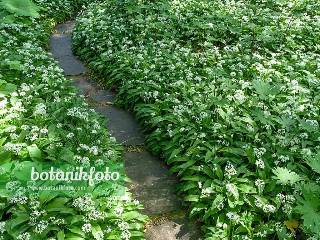 Allium ursinum, commonly known as wild garlic, ramsons, or bear's garlic, is a perennial plant native to Europe and Asia. It grows in moist, shady woodlands and produces broad, lance-shaped leaves with a strong garlic scent. In spring, it blooms with white, star-shaped flowers. The leaves, flowers, and bulbs are edible and used in cooking, offering a mild garlic flavor. It has medicinal properties, including antibacterial and antioxidant effects. Avoid confusion with toxic look-alikes like lily of the valley.