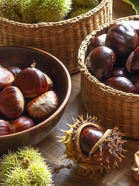 Sweet chestnut (Castanea sativa) and common horse chestnut (Aesculus hippocastanum)