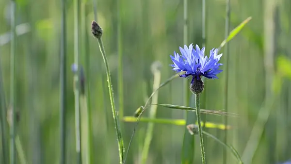 Cornflowers (Centaurea cyanus) and barley (Hordeum)