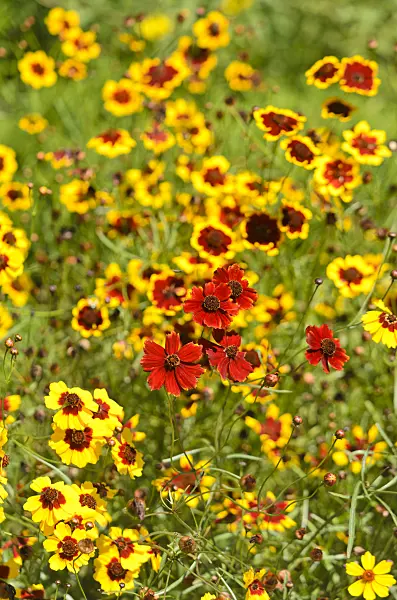 Spider flower (Tarenaya hassleriana syn. Cleome hassleriana), opium poppy (Papaver somniferum), love-in-a-mist (Nigella damascena), common zinnia (Zinnia violacea syn. Zinnia elegans) and golden tickseed (Coreopsis tinctoria)