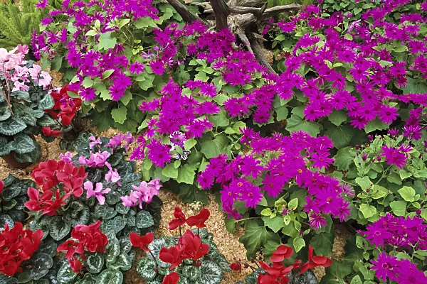 Cineraria (Pericallis Senetti Magenta) and Cyclamen