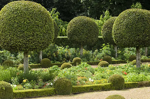Portugal laurel (Prunus lusitanica) and common boxwood (Buxus sempervirens 'Arborescens')