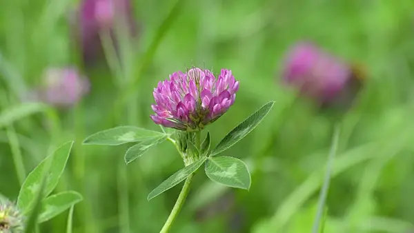 Red clover (Trifolium pratense), common bird's-foot-trefoil (Lotus corniculatus) and sour dock (Rumex acetosa) at former Berlin Tempelhof Airport, Tempelhofer Freiheit, Berlin, Germany