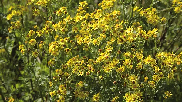 Silver groundsel (Senecio cineraria) and common heather (Calluna vulgaris)