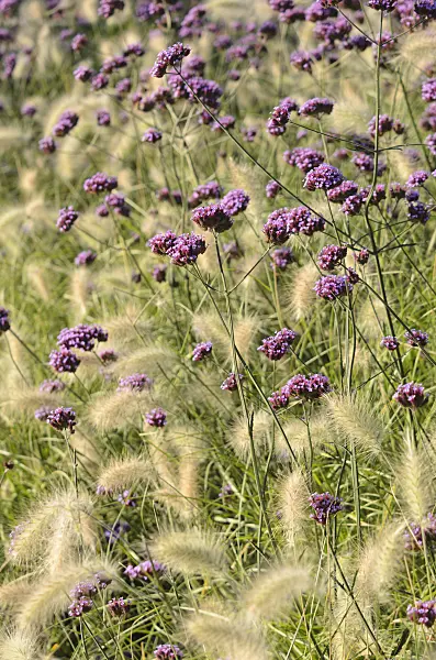 Feathertop grass (Pennisetum villosum) and purpletop vervain (Verbena bonariensis)