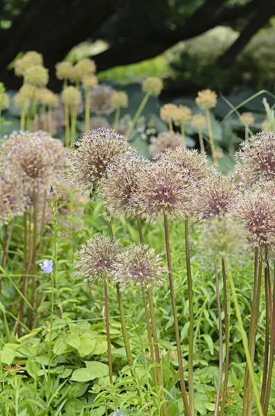 Giant allium (Allium Globemaster) and plantain lily (Hosta)