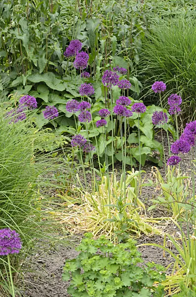 Giant allium (Allium Globemaster) and plantain lily (Hosta)