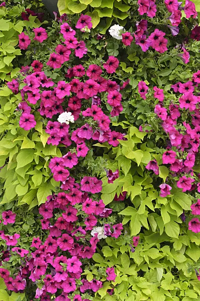 Petunias (Petunia) and sweet potatoes (Ipomoea batatas)