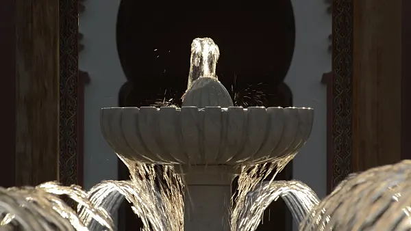 Japanese anemone (Anemone hupehensis var. japonica) with fountains in an oriental garden