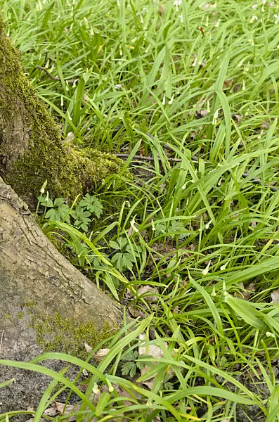 Anémone des bois (Anemone nemorosa) et ail (Allium paradoxum)