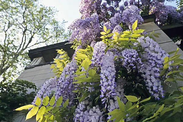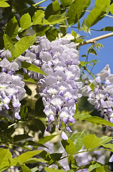 Clématite des montagnes (Clematis montana) et glycine (Wisteria)