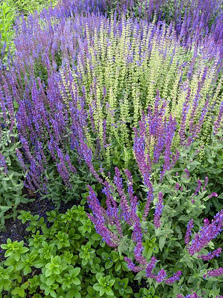 Lit de vivaces avec sauges (Salvia)