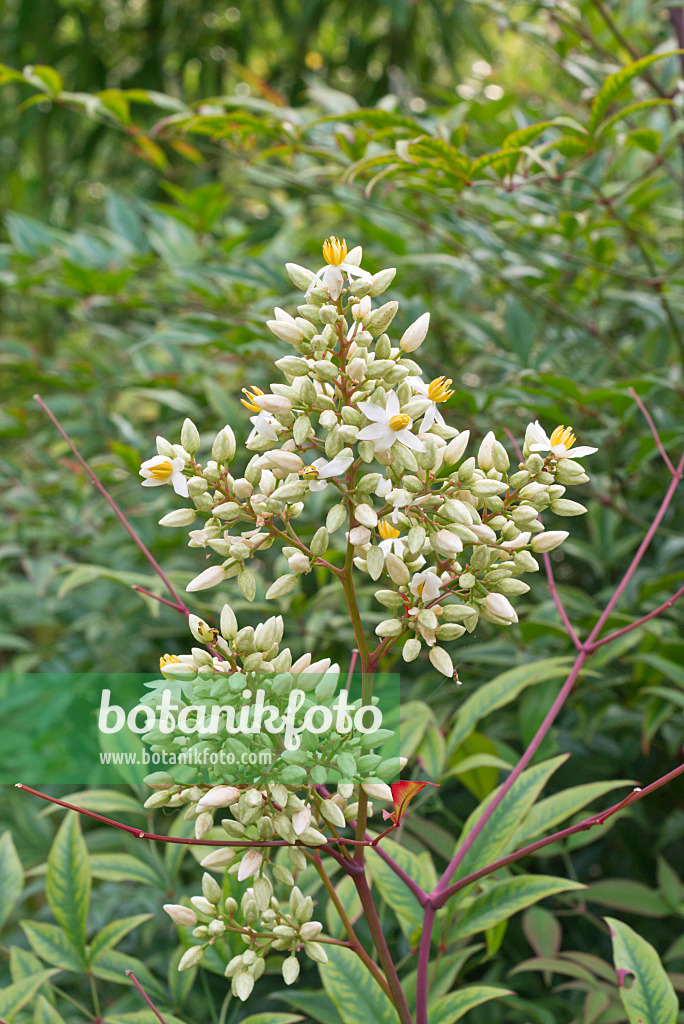 Le Nandina domestica, aussi appelé bambou sacré, est un arbuste persistant originaire d'Asie. Il mesure 1 à 2 mètres et produit des feuilles rougeâtres en automne, des fleurs blanches en été et des baies rouges en hiver. Résistant et peu exigeant, il est souvent utilisé en ornement. Attention, ses baies sont toxiques.