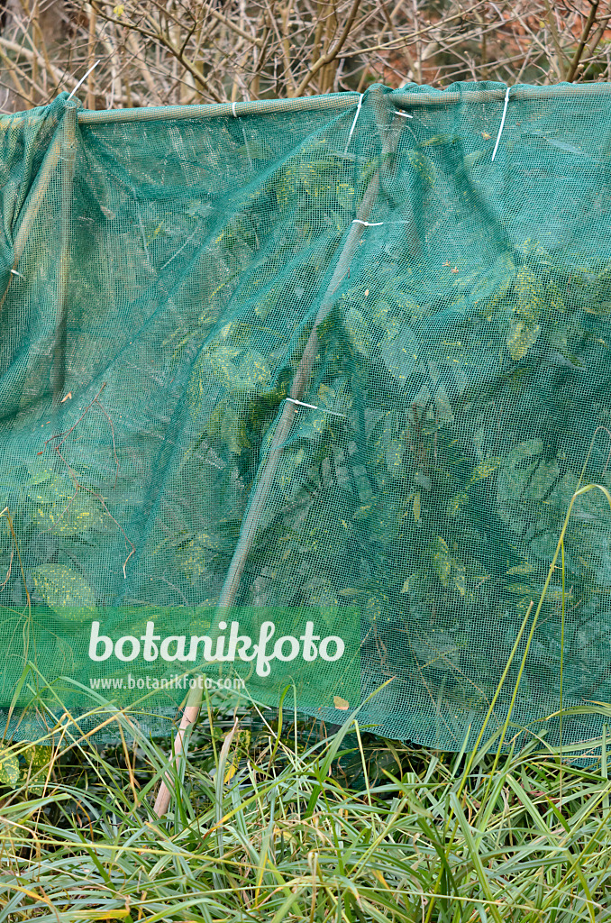 Aucuba du Japon (Aucuba japonica 'Variegata') avec un voile d'hivernage