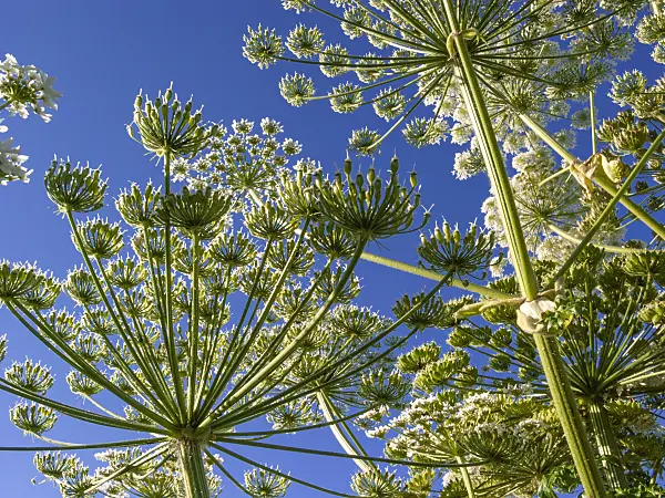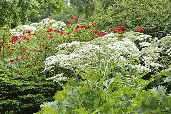 Berce laineuse (Heracleum lanatum), barbe de bouc (Aruncus) et chou marin (Crambe cordifolia)