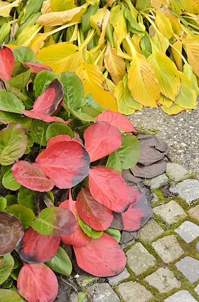 Bergenia cordifolia, aussi appelée Bergénie à feuilles en cœur, est une plante vivace rustique. Elle est appréciée pour ses grandes feuilles persistantes et ses fleurs roses au printemps. Elle pousse bien à l'ombre ou mi-ombre et préfère les sols humides. Idéale pour les bordures ou comme couvre-sol.