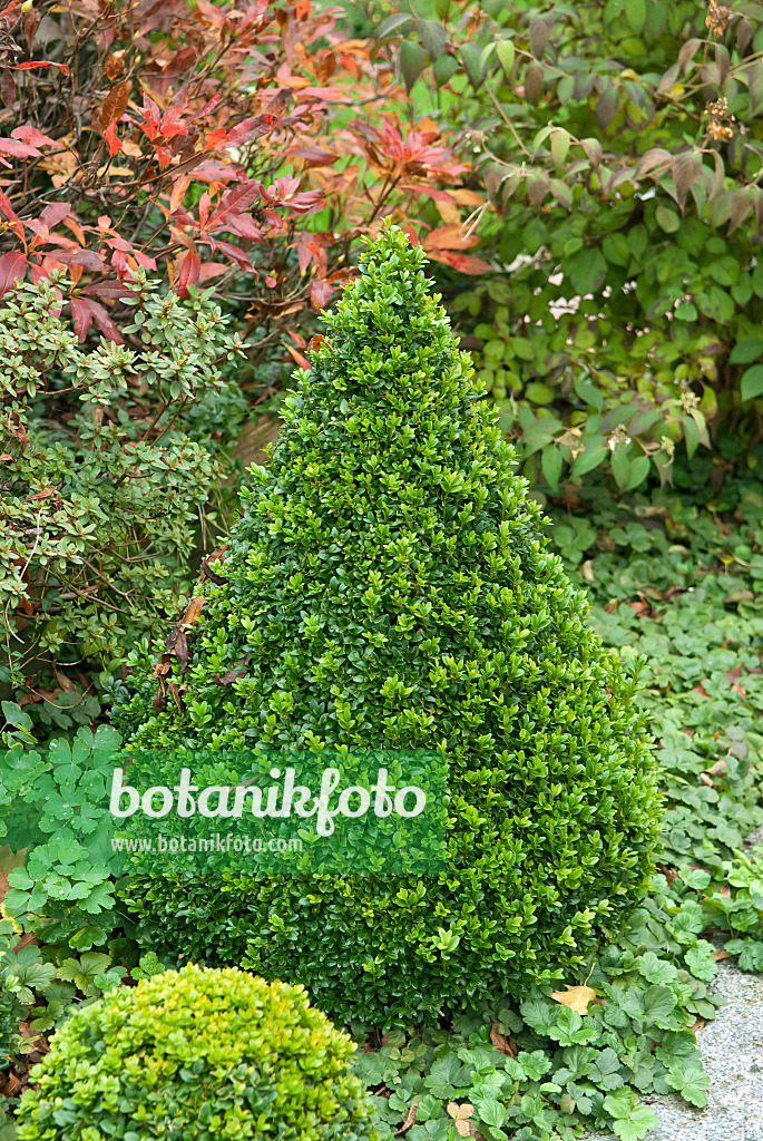 Le Buxus sempervirens, ou buis commun, est un arbuste persistant de la famille des Buxacées. Il est apprécié pour son feuillage dense et vert foncé, ainsi que pour sa capacité à être taillé en formes variées. Originaire d'Europe et d'Asie, il pousse lentement et peut vivre plusieurs siècles. Il est souvent utilisé dans les jardins à la française et pour les topiaires. Attention à la pyrale du buis, un ravageur invasif.