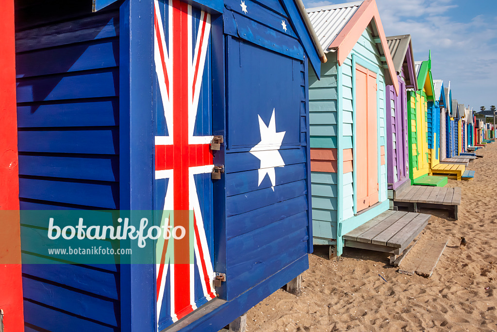 Cabane de plage avec un drapeau de l'Australie, Brighton, Australie