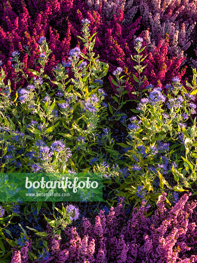 Caryoptéris de Clandon (Caryopteris x clandonensis) et bruyère (Erica)