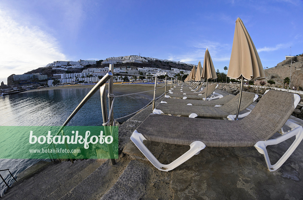 Chaises longues à la plage, Puerto Rico, Gran Canaria, Espagne