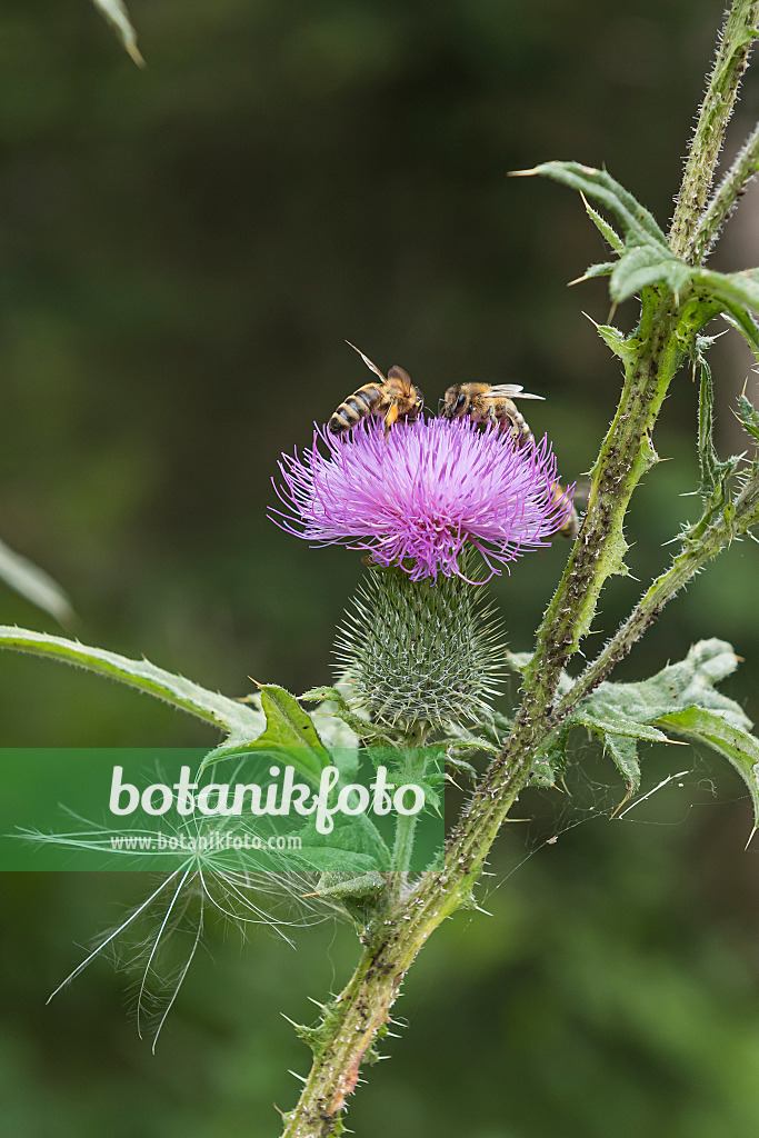 Cirse commun (Cirsium vulgare) et abeille (Apis)