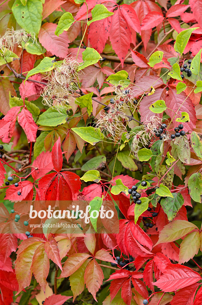 Clématite des haies (Clematis vitalba) et vigne vierge à cinq folioles (Parthenocissus quinquefolia)