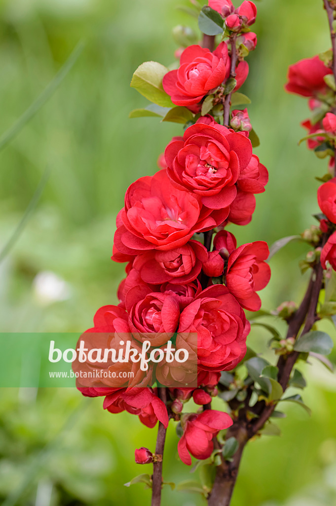 Le Chaenomeles speciosa, aussi appelé cognassier du Japon, est un arbuste épineux à fleurs printanières. Il produit des fleurs rouges, roses ou blanches avant l'apparition des feuilles. Ses fruits, semblables à des coings, sont comestibles mais très acides. Rustique et facile à cultiver, il est souvent utilisé pour les haies décoratives. Originaire d'Asie, il mesure généralement 1 à 2 mètres de haut.