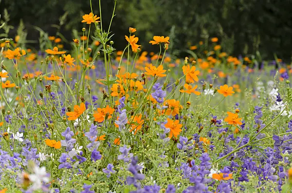 Cosmos sulphureus et sauge verte (Salvia viridis syn. Salvia horminum)