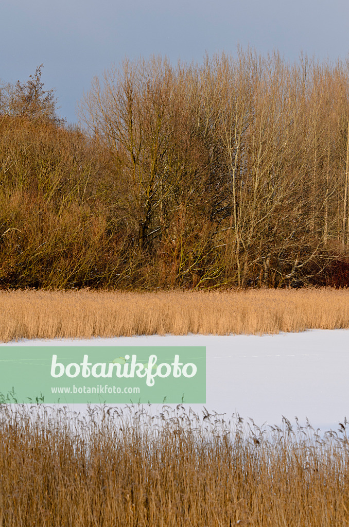 Cygnes tuberculés (Cygnus olor) sur un lac glacé, réserve naturelle de Karower Seen, Berlin, Allemagne