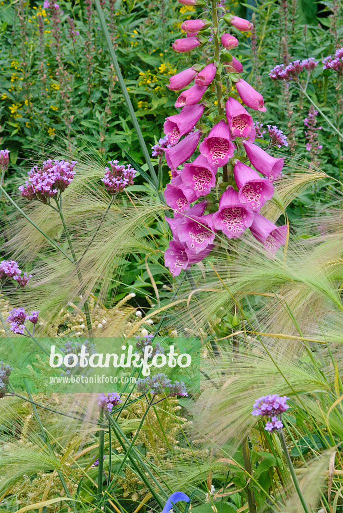 Digitale pourpre (Digitalis purpurea), verveine de Buenos Aires (Verbena bonariensis) et orge à crinière (Hordeum jubatum)