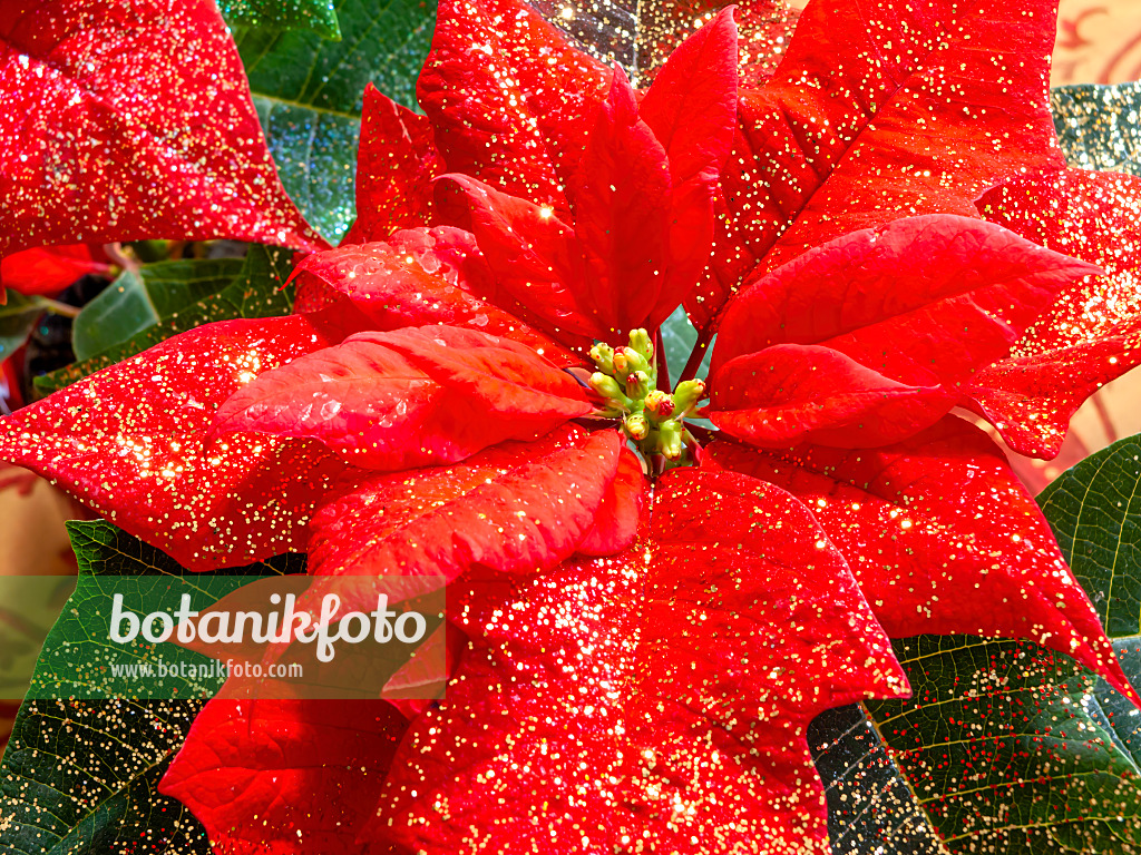 Étoile de Noël (Euphorbia pulcherrima) avec des petites paillettes
