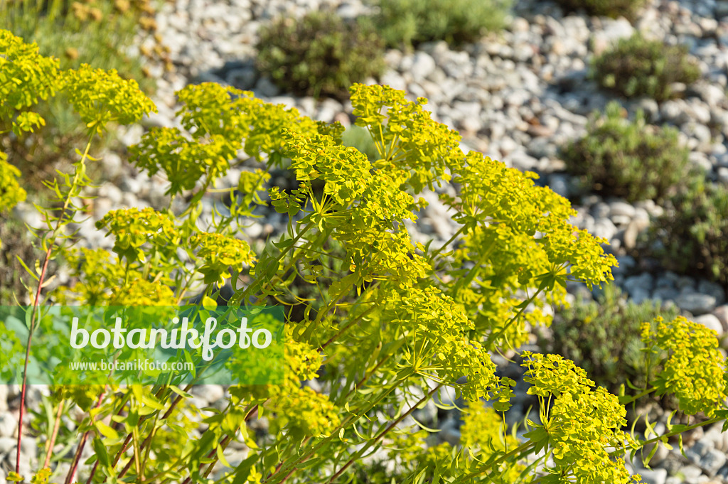 Euphorbe (Euphorbia) dans un jardin de gravier ensoleillé