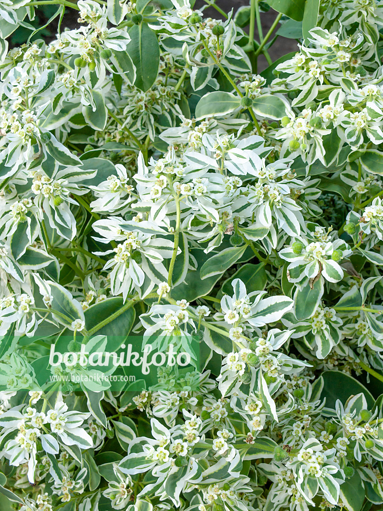 L'Euphorbia marginata, aussi appelée "euphorbe marginée" ou "neige sur la montagne", est une plante annuelle originaire d'Amérique du Nord. Elle se distingue par ses feuilles vertes bordées de blanc et ses petites fleurs discrètes. Toxique, elle produit un latex irritant. Elle pousse en plein soleil et résiste à la sécheresse, idéale pour les jardins secs.