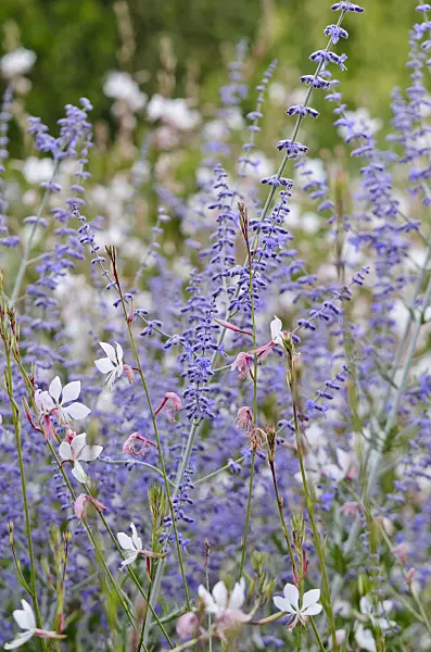 Gaura de Lindheimer (Gaura lindheimeri 'Gambit Rose') et Pennisetum setaceum 'Rubrum'