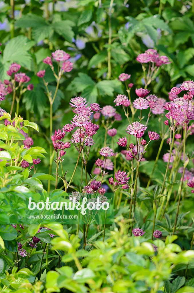 L'Astrantia major, aussi appelée grande astrance, est une plante vivace originaire d'Europe. Elle mesure 60 à 90 cm et fleurit de juin à août avec des fleurs blanches ou roses entourées de bractées décoratives. Elle préfère les sols frais et mi-ombragés, idéale pour les jardins naturels ou romantiques. Résistante et peu exigeante, elle attire les pollinisateurs.